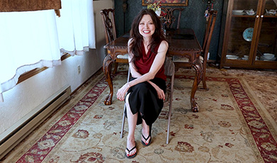 Your best friend spent the night for a sleepover. You guys are just getting out of bed. You wander into the living room and see your mom, Natasha Flade, barefoot and still in her pajamas. She comments that she knows you guys were tying each other up. You just can't pass up this opportunity, so you challenge her to a game of escape. Mom Natasha laughs and says, "You know I can get out of anything." You challenge her by saying, "Prove it!" Your mom accepts the challenge, so you guys go and get some ropes so you can tie her up.