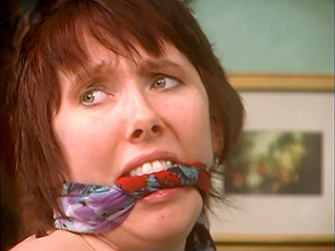 RE-EDITED WITH NEVER-BEFORE-SEEN FOOTAGE & HIGHEST PICTURE QUALITY! Natasha Flade, the hot office mom, is chairtied in her red turtleneck sweater, slacks (pantyhose underneath) and spiked high heels. It’s sweater bondage time for mom! You have a camera set up and you make her plead into the camera like it’s a real ransom video to be sent to her husband so he’ll cough up the loot for this damsel! Natasha puts on a good show for the ransom tape, her eyes wide as she pleads and begs for someone to please rescue her! After she’s done telling the camera about her tied up predicament, she asks you if she made it right. You tell her she did great, but right now it's gag time!