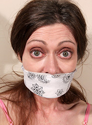 You tell her that the loser's fate is that she has to stay tied-up even longer. And she has to be gagged, too! Natasha reluctantly accepts a cleave gag as a condition of losing the game. But she continues her escape attempts, trying to get loose and gag talking all the while. She even trash-talks your gag, saying that it really isn't very effective. It isn't? You can fix that! So you add a few layers of cloth over the cleave gag for a thick OTM gag. Now mom is much quieter. She still makes some awesome mmphs!